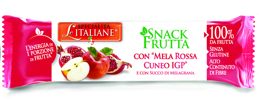 Sono arrivate le nuove, anzi le uniche barrette Snack Frutta “premium” della linea "Le Specialità Italiane®": pochi ingredienti selezionati, solo specialità italiane, tutto naturale. Tutto il gusto della frutta genuina e di qualità, come le Specialità IGP italiane, in uno snack sano e dal sapore unico. Tutta l’energia di una porzione di frutta, senza glutine e ad alto contenuto di fibre in 4 varianti di gusti unici
